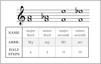 Figure 5.1 Counting letter names and half steps to determine interval and quality.